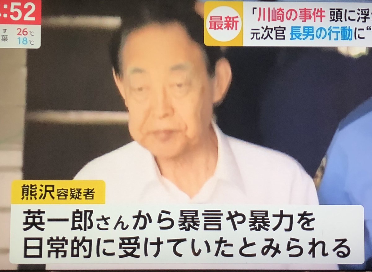 日本は平和というか不平不満が他国に比べて余り深刻でない時期が長くて「この理不尽な社会にテロを!」という考えを持つ輩が出て来なかった。 川崎の事件とこの事件がそれぞれの立場の人間に対して不満をどう爆発させるかの方向性を決めてしまった気がする。ほとんどの人はこれらを反面教師として何とか穏便に解決しようとするだろうけど全てのケースで話がまとまる訳がない。全国に燻る親子の確執は新たな事件の引き金になるんじゃないかな。