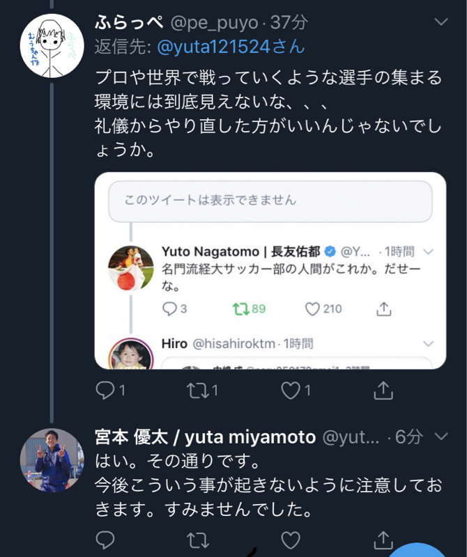 【悲報】流経大サッカー部員、クソリプを送って世界の長友をブチギレさせてしまう
