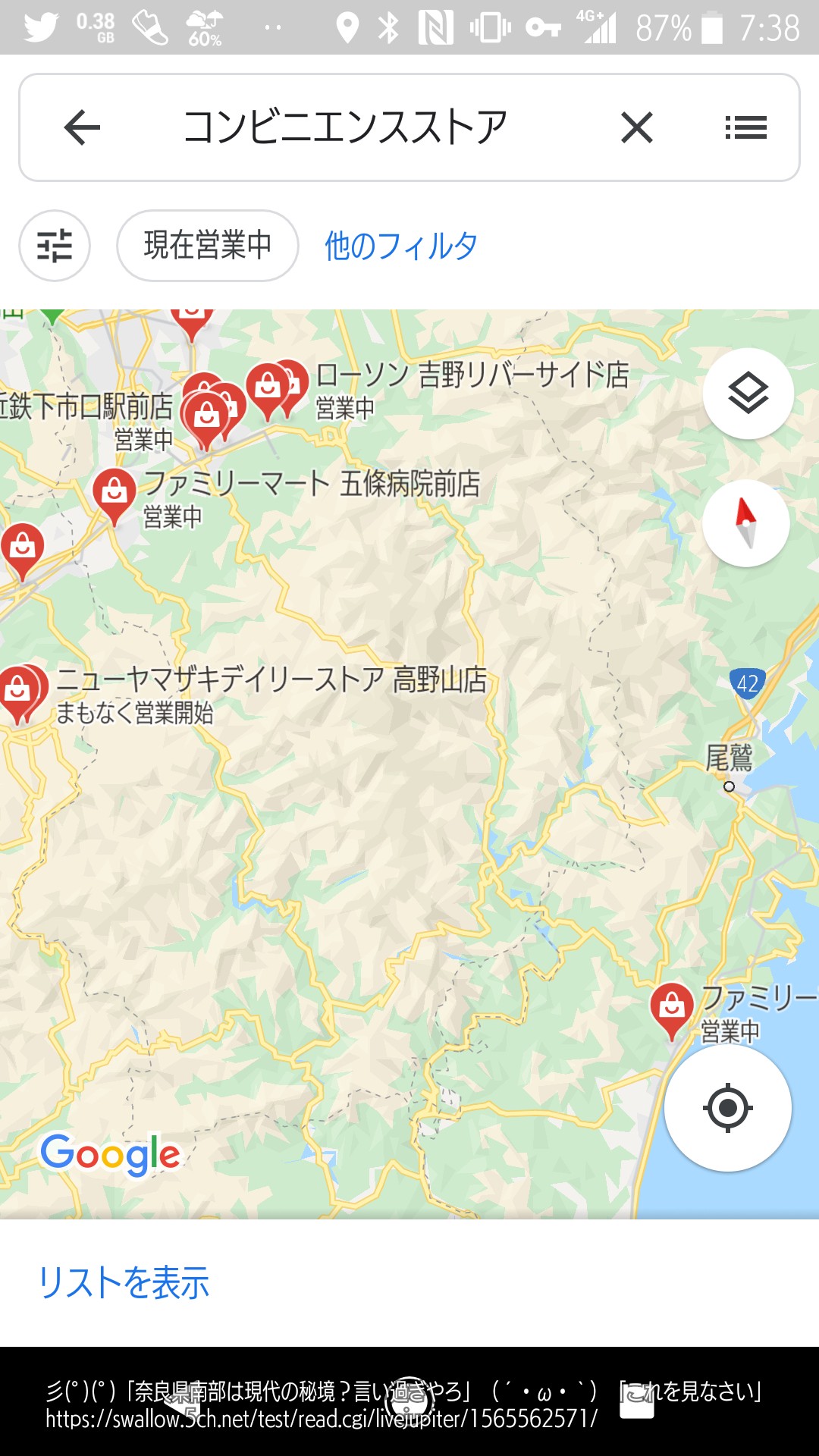 河合と下北山にはデイリーヤマザキがあるし、その先にはセブイレだってある。道も余裕で対抗出来る太さだしカーブもそこまでキツくない。個人的にはここよりも岡山の北側とか広島のの府中〜三原の山奥とかの方が道端狭いしカーブきっついしでつらかった