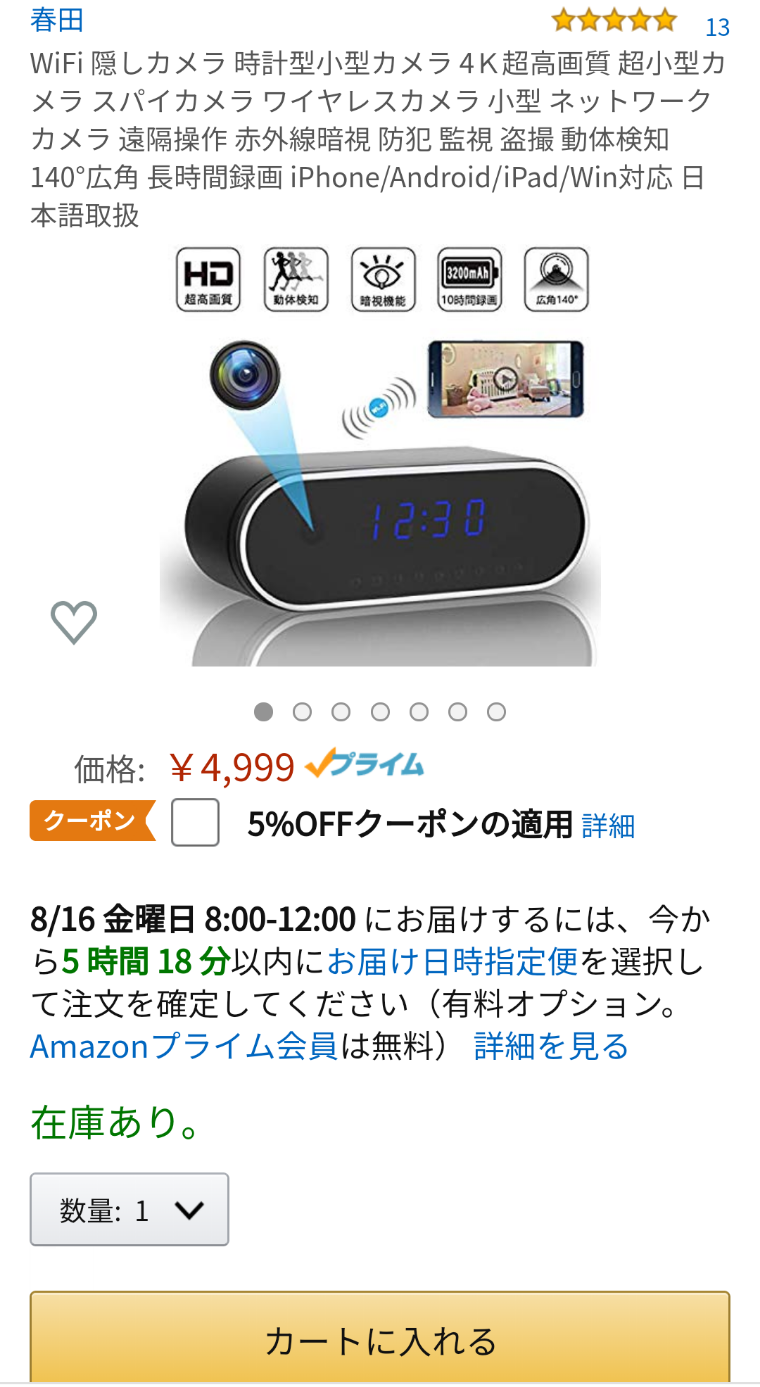 カメラ付き置き時計で検索したら、なるほど
