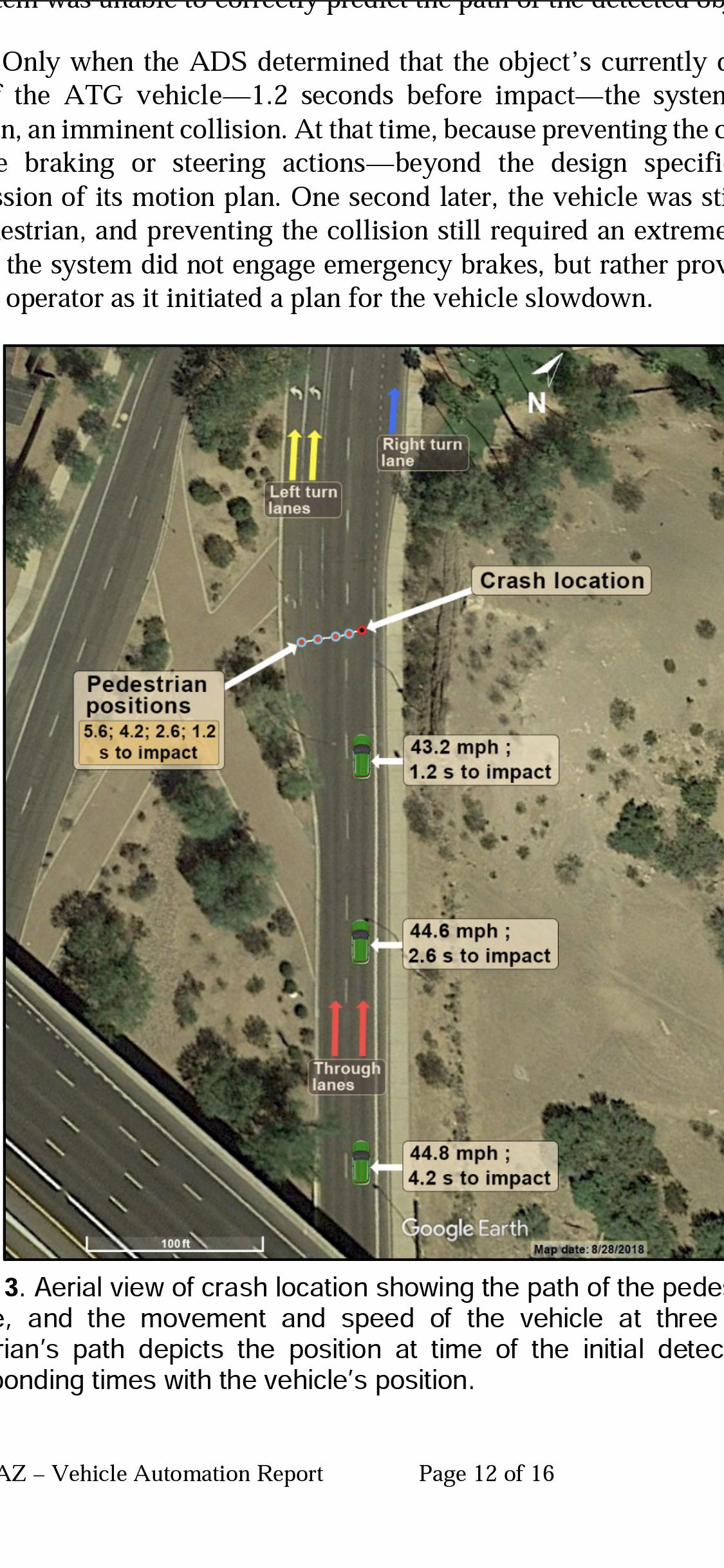 衝突の5.6秒前に、ADSが初めて歩行者を検出したとき、彼女は2つの左折車線のほぼ中央に位置していました(図3を参照)。
