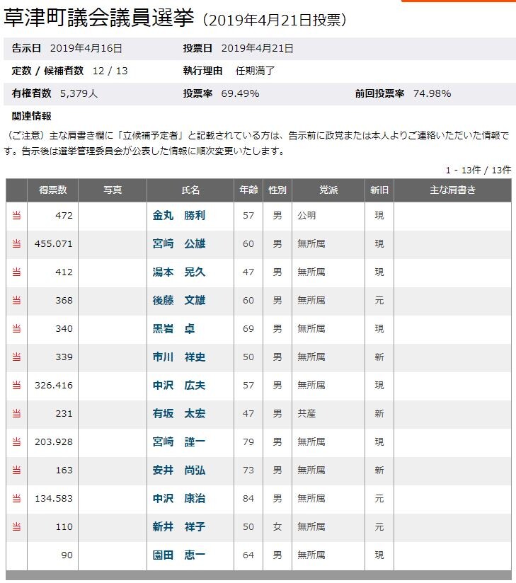 例えば2019年の宮崎公雄さんは455071票で当選したんじゃなくて455.071票で当選したんやぞ