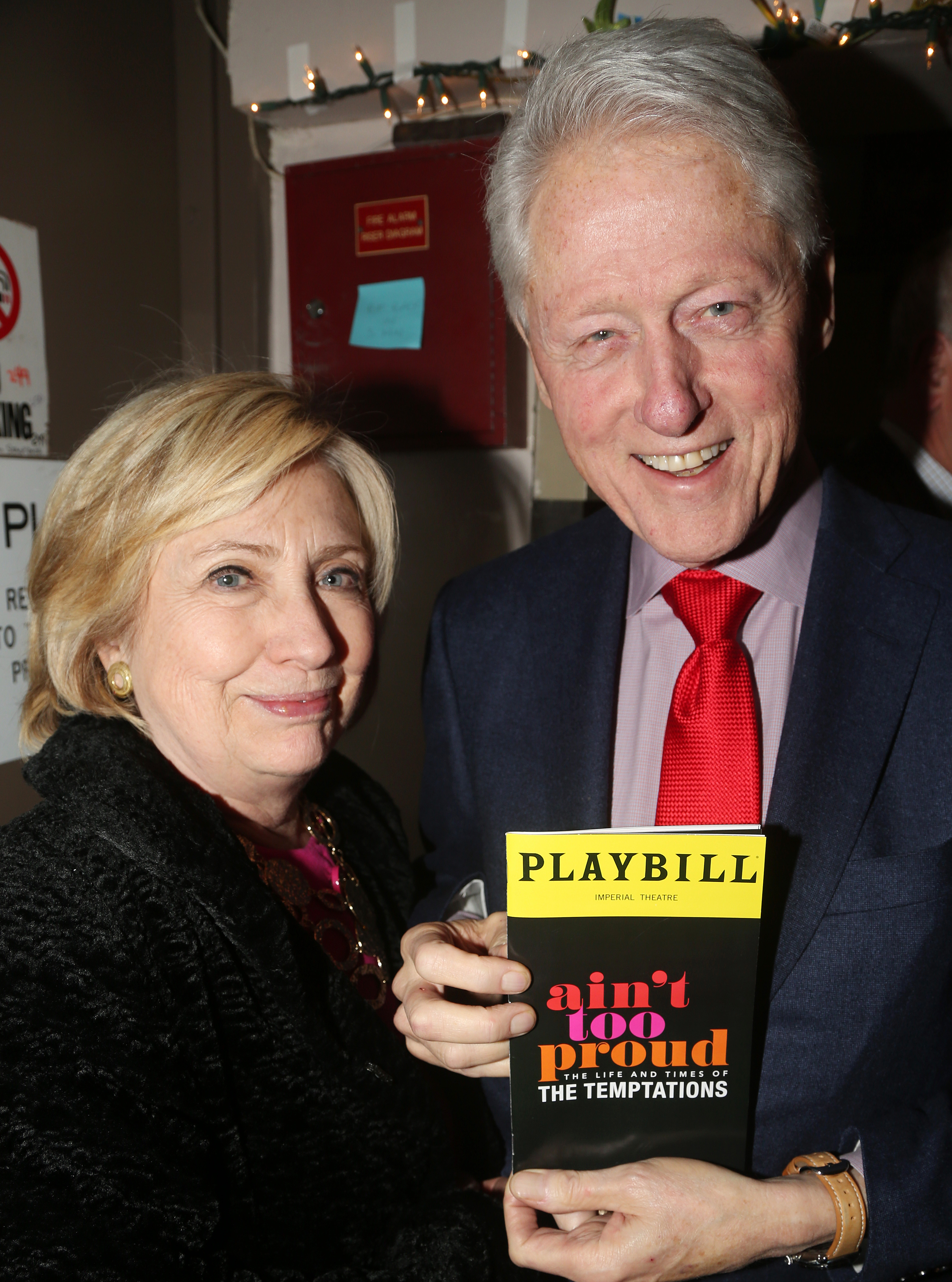 Hillary posed alongside her husband and ex-President Bill behind the scenes at Ain't Too Proud: The Temptations Musical at The Imperial Theatre.