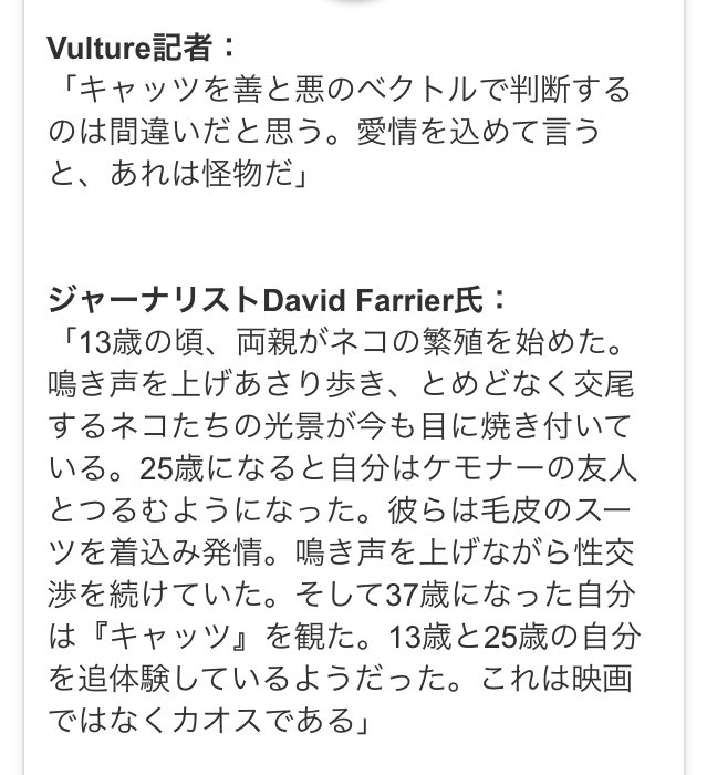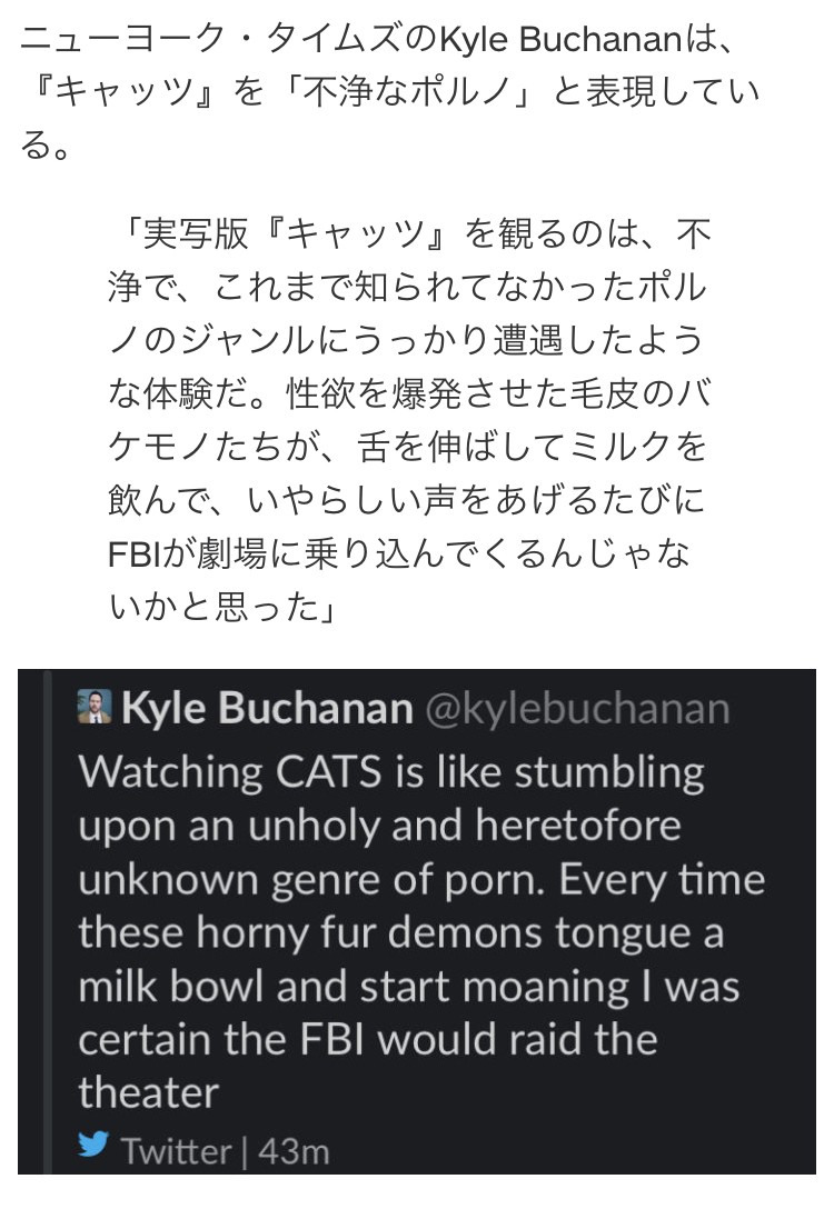 『キャッツ』実写映画の悪評が止まらない 「ポルノ。ワースト。恐怖」の声も https://t.co/IRccwVhWWN #キャッツ #CATS #女子SPA!