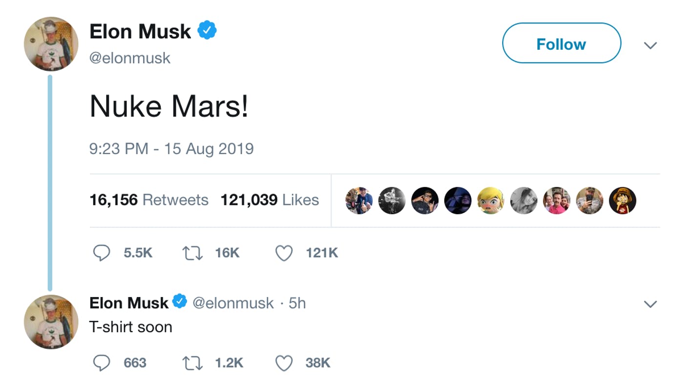 イーロン・マスクは火星に核爆弾を投下計画か? Nuke Mars!Tシャツ発表