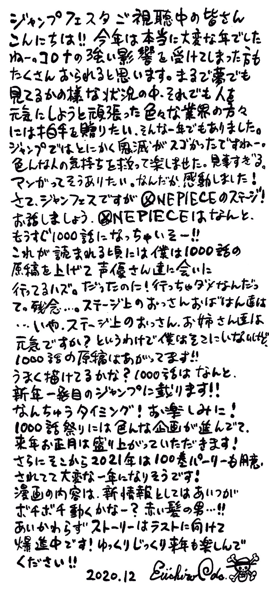 — ONE PIECEスタッフ【公式】 (@Eiichiro_Staff) December 20, 2020
