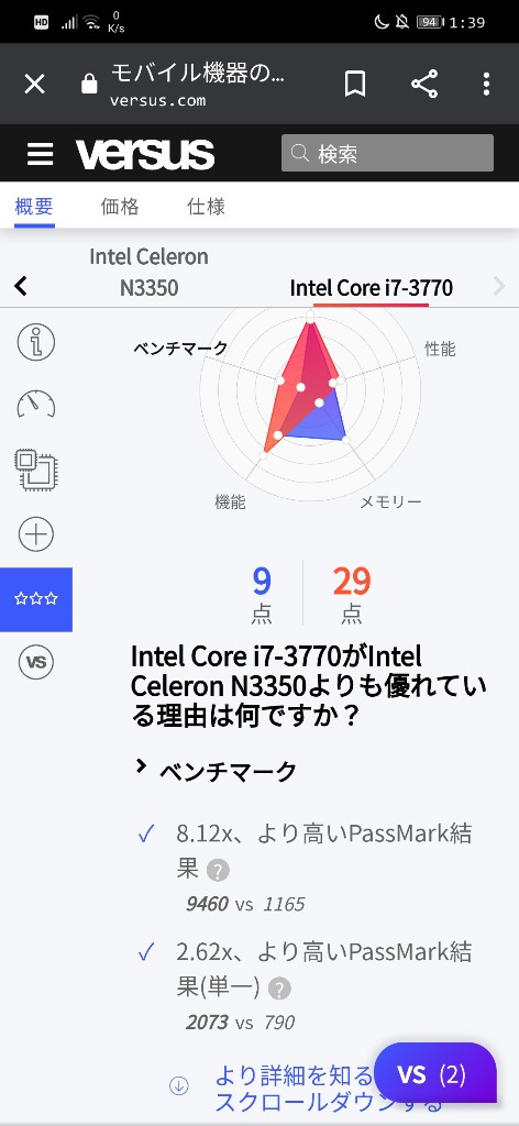 このセレロンノート用やから比べる対象が違うぞ