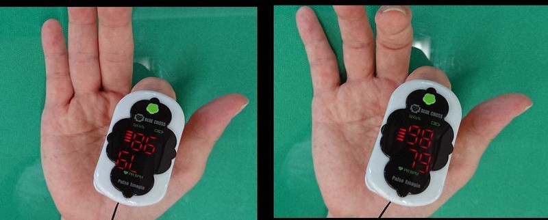 (上が脈拍数で下が酸素飽和度/上が酸素飽和度で下が脈拍数の2パターン)