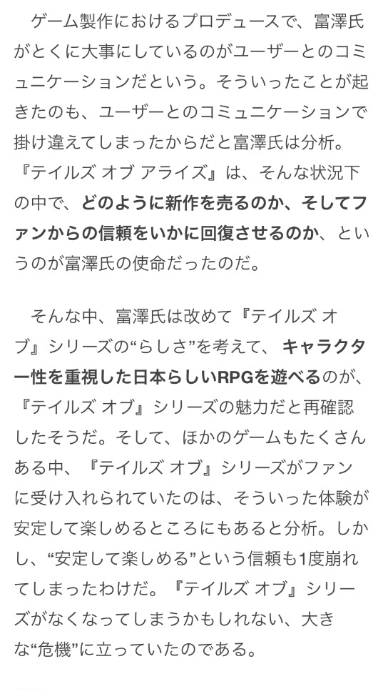 チームそのものが崩壊し『テイルズ オブ』シリーズを今日まで続けることは到底できなかったはずです。