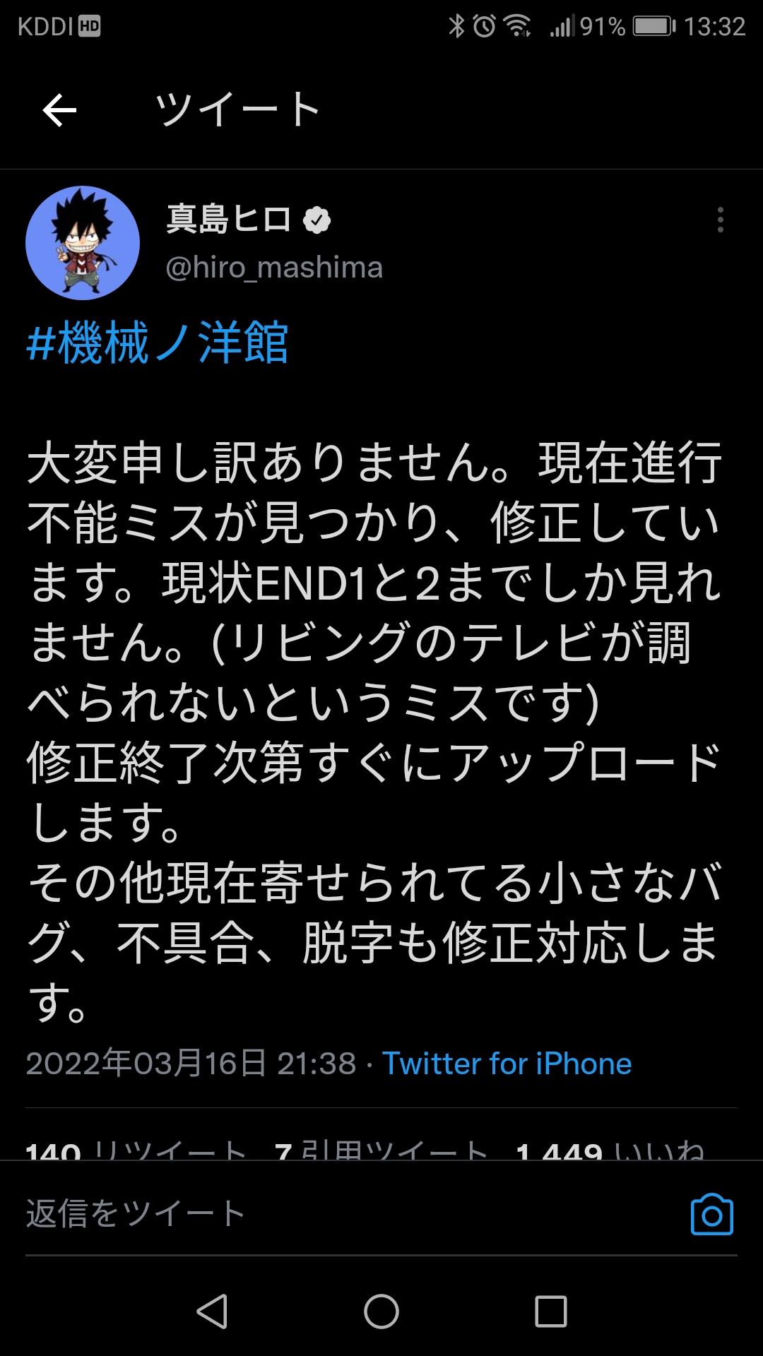 — 真島ヒロ (@hiro_mashima) March 16, 2022