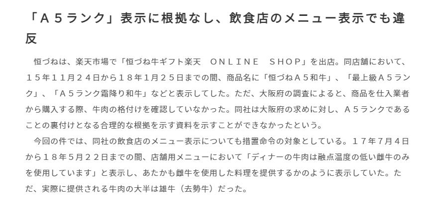 ふるさと納税の返礼品としてA5ランクの牛肉を提供してたのだが