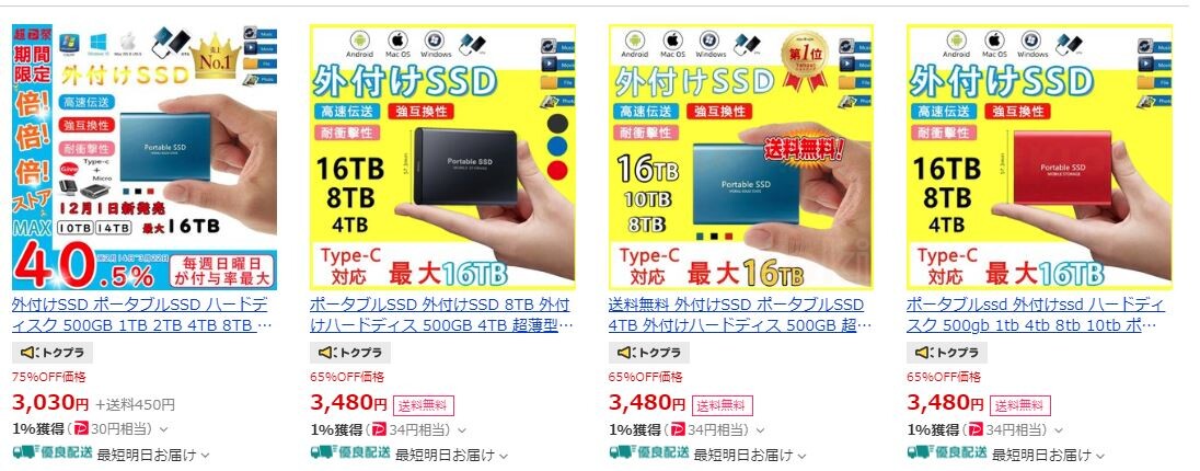 1TBくらいのでも中身スカスカの製品とか、レビュー見るとあるみたいやな。