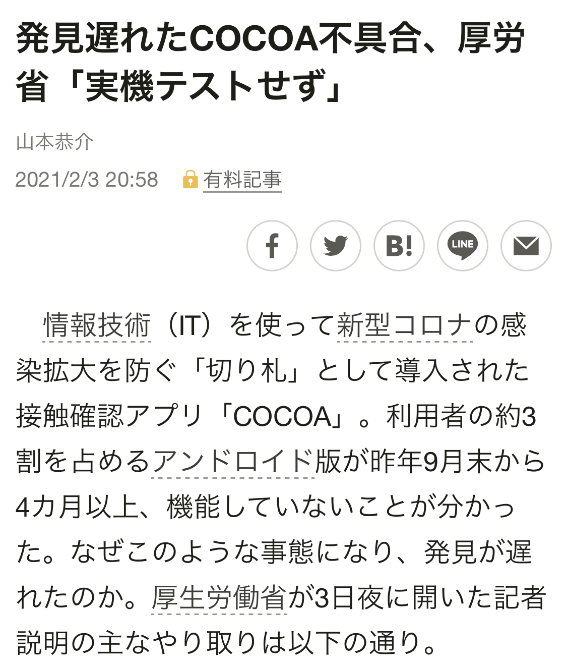 COCOAが役立ったとか税金が有効に使われたという話じゃない