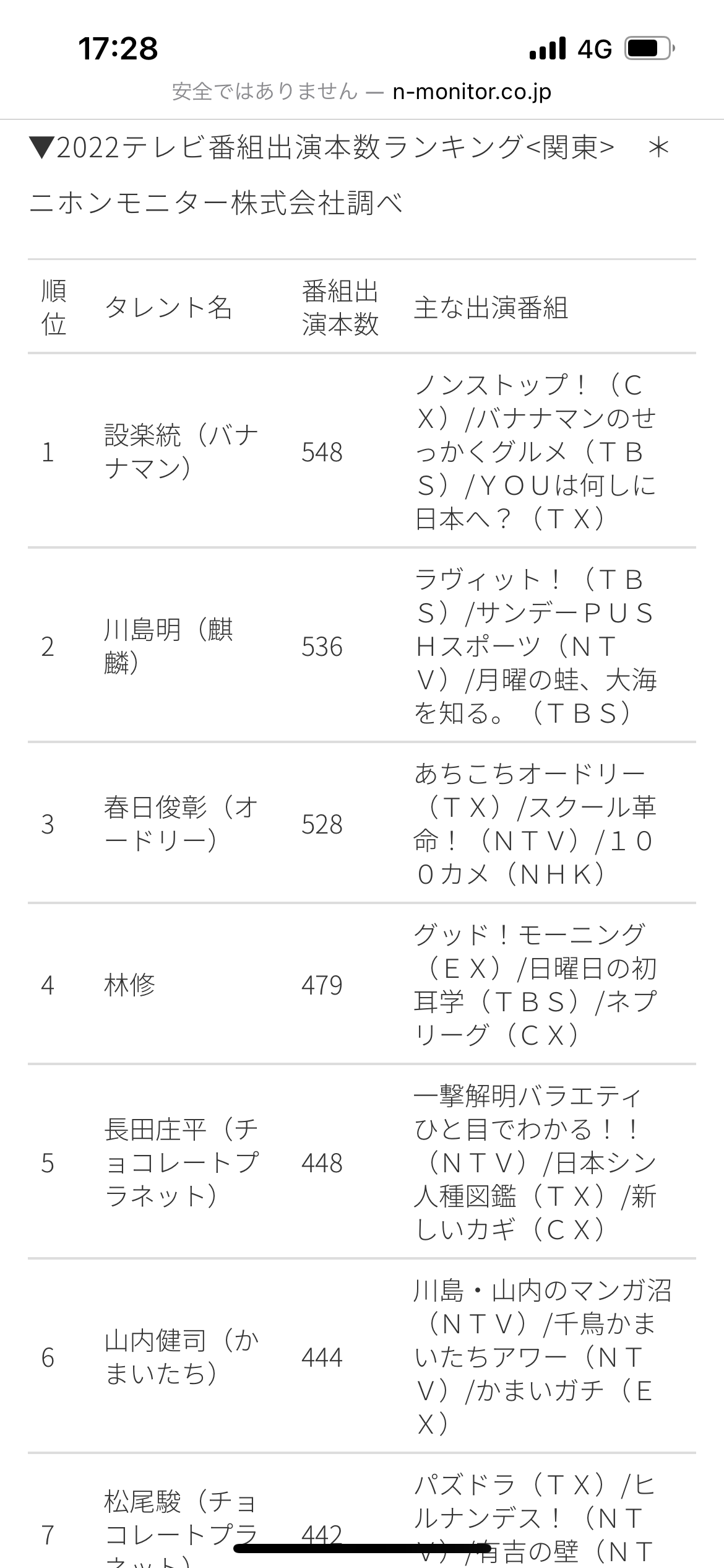 そして「大学のサークルみたいな芸人連中の仲良し番組」に呼ばれない時点で芸人連中からも人望も友情も交流も無いんだろ。