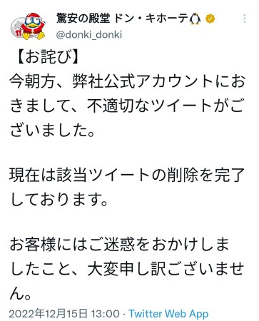 — 驚安の殿堂 ドン・キホーテ🐧 (@donki_donki) December 16, 2022