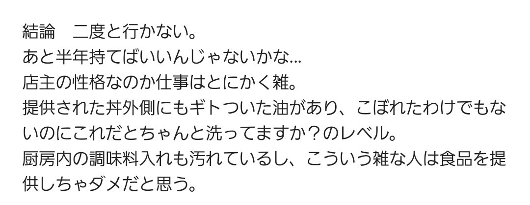 レビュワーは店名をボカしてるのに、そんなもんを店側が見つけて叩きに行くのは流石にマナー違反や