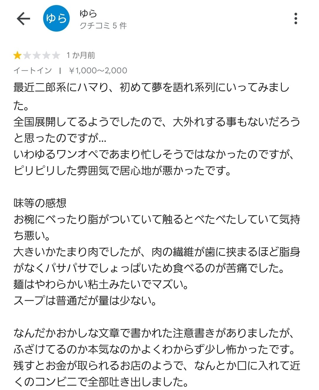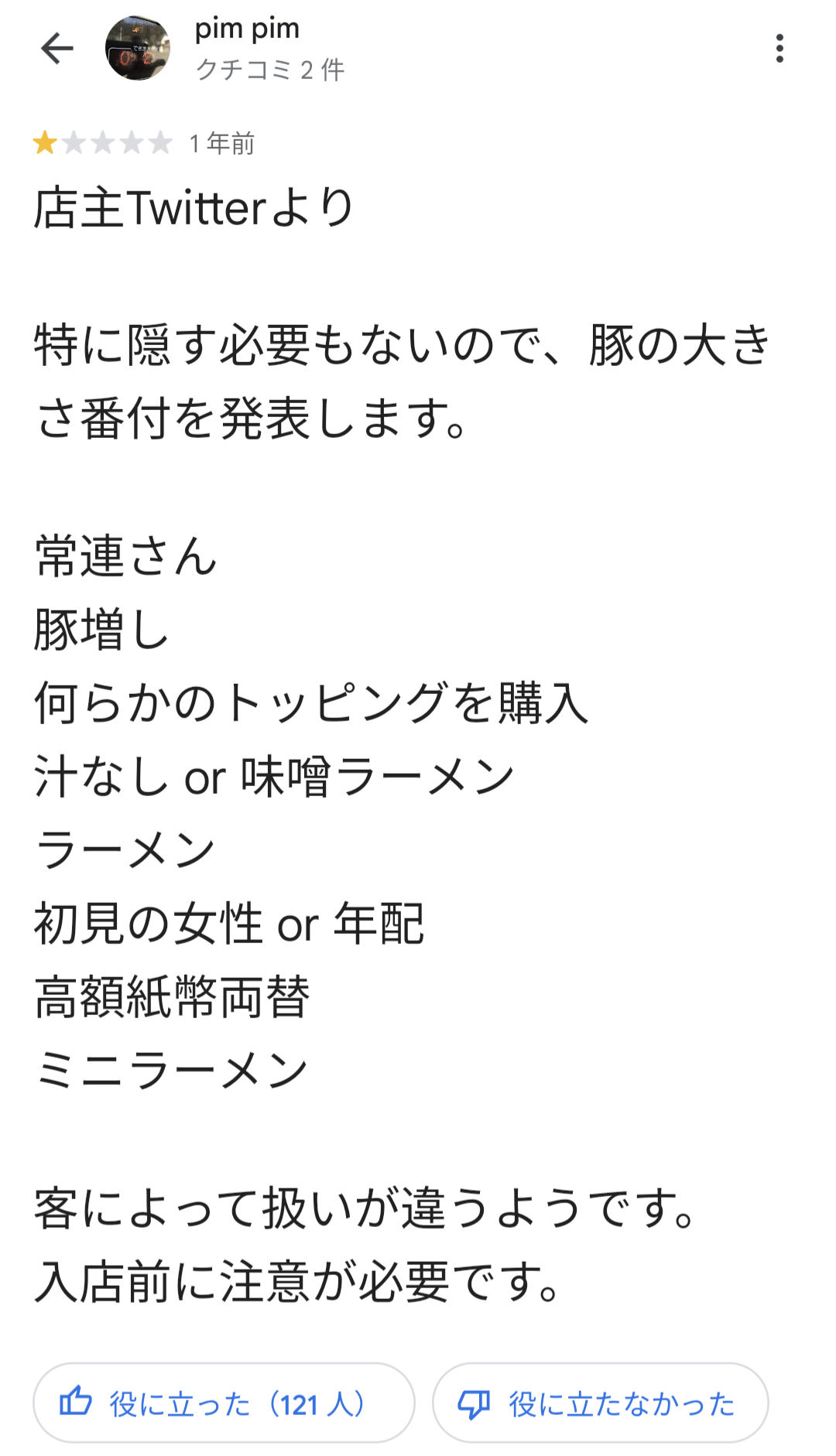 ちなみにマイナスレビュー書く都合で名前伏せたんだろうがこの直前に店名出したツイートしてるから店主はそのツイートから飛んだ可能性が高い