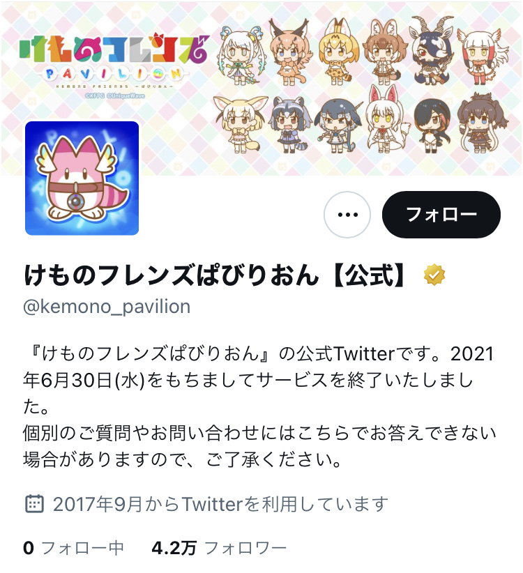 けもフレぱびりおんが不可解なのは他のけもフレ垢には青すら付いていない点