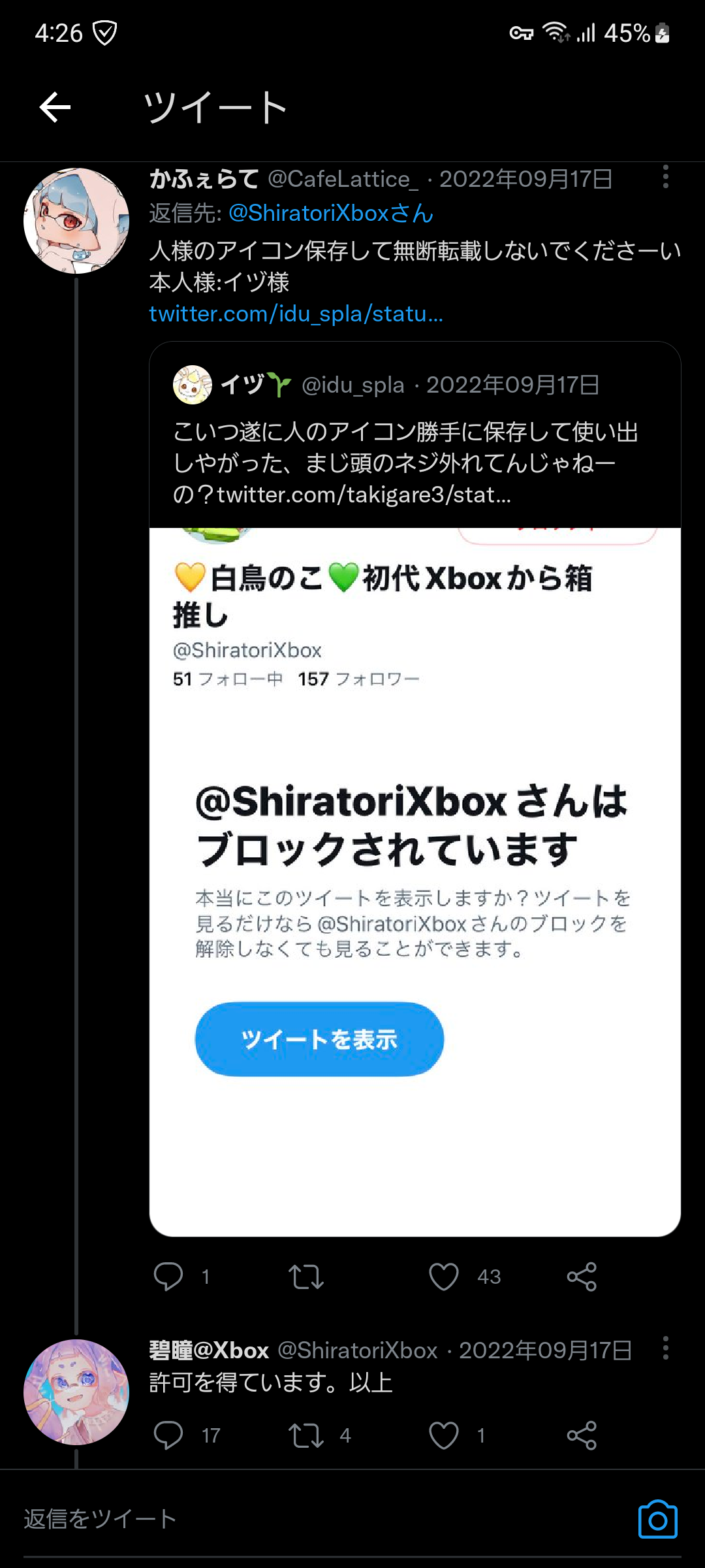 現在はXBOXユーザーへのなりすましを行っている模様。アカウントは『白鳥のこ / @ShiratoriXbox』を用いている。