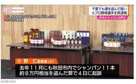元プロ野球選手の小野仁容疑者(46)は、先月8日、横浜市瀬谷区のスーパーマーケットでウイスキー7点、およそ3万5千円相当を万引きした疑いがもたれています。