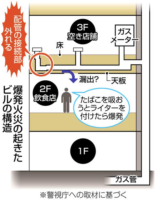 3階で作業をしていた内装業者が「ガス管のふたの部分を取ろうと思って回した」と警視庁に話していることが分かっていますが、その後の警視庁への取材で「ガス管かもしれないが、ガスは通っていないと思いパイプレンチでふたを回した」と説明していることが新たに分かりました。