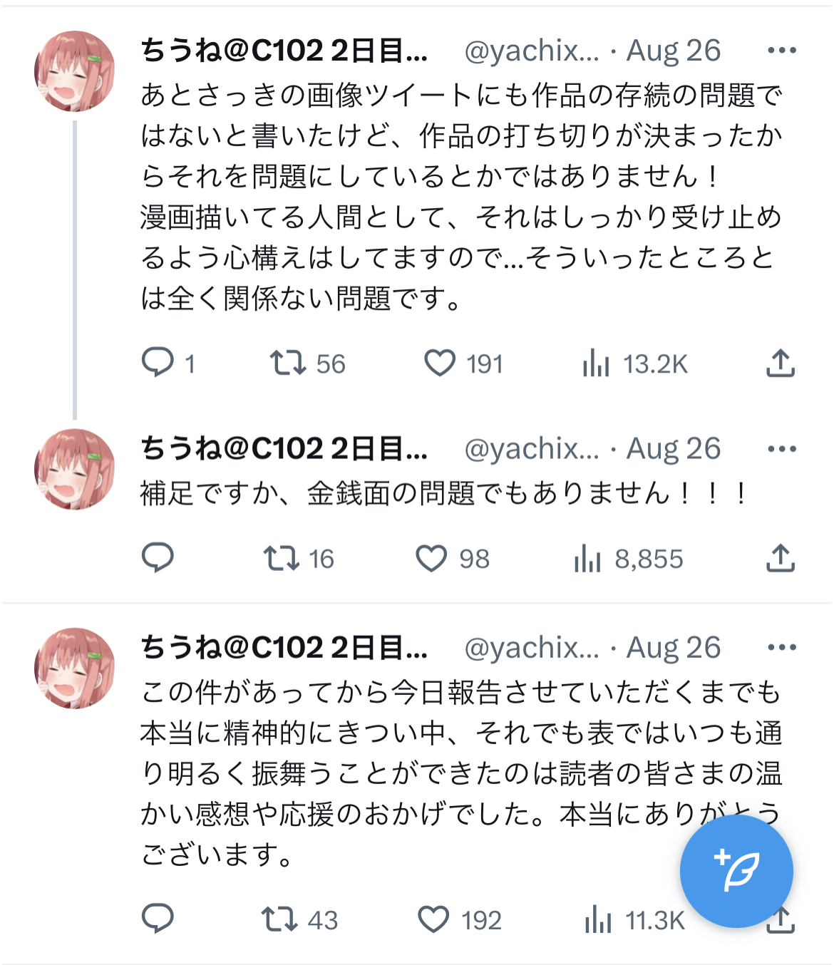 休載するけど私のせいじゃないって言っとるけど詳細語らないならわからんやん