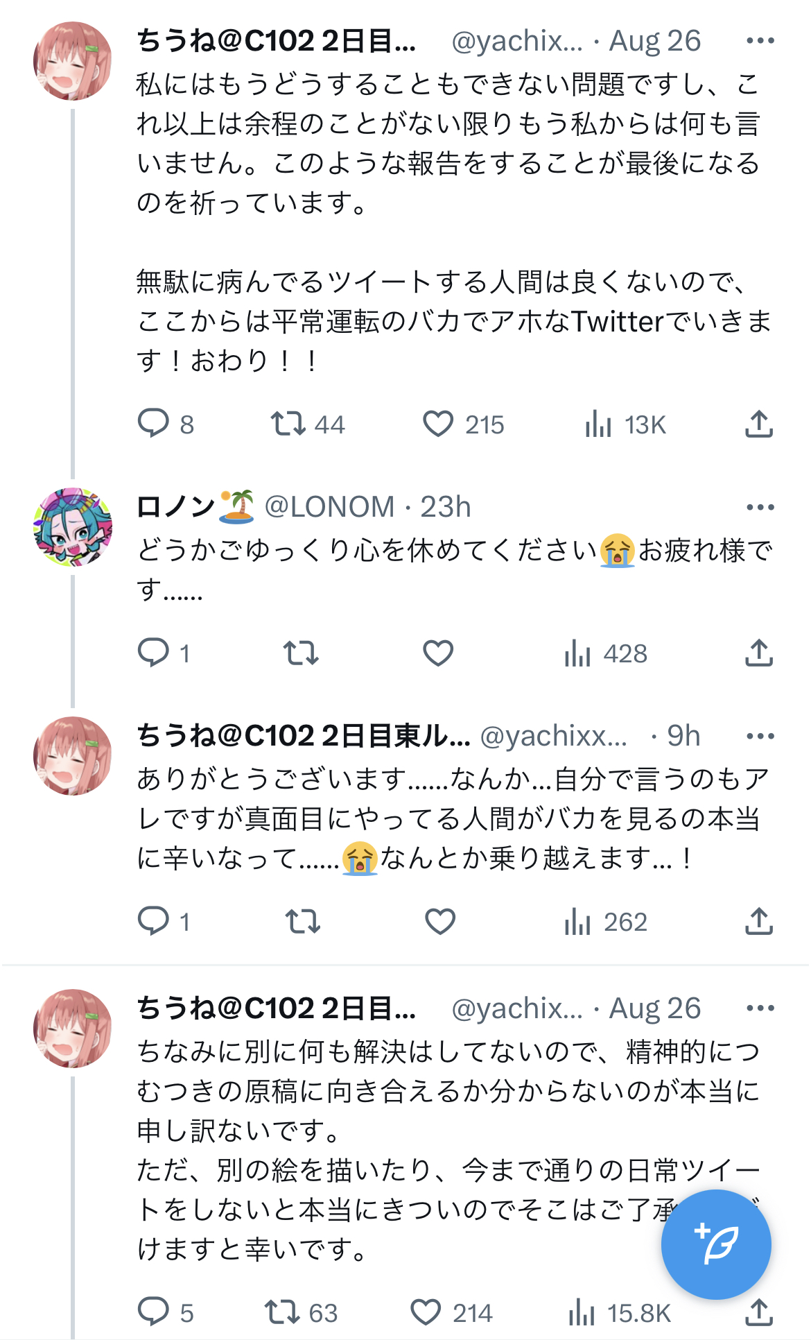 だろうけどこれだけ情報出さずに構ってちゃん構文のお気持ち表明しかしない人を理解してやりたくもないわな