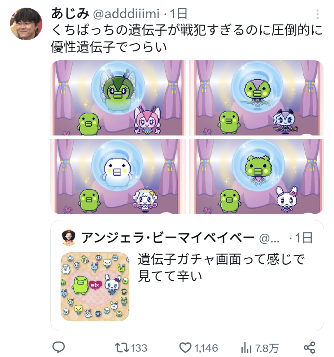どんなにかわいい遺伝子を混ぜても修正不可になってるのとんでもないな