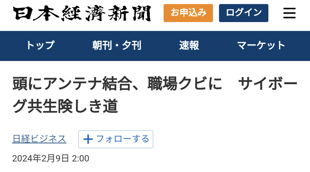 頭にアンテナ結合、職場クビに サイボーグ共生険しき道