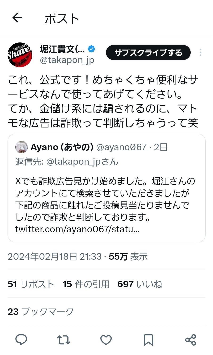 これで詐欺広告の方は残ってたらさらにおもろいんやが