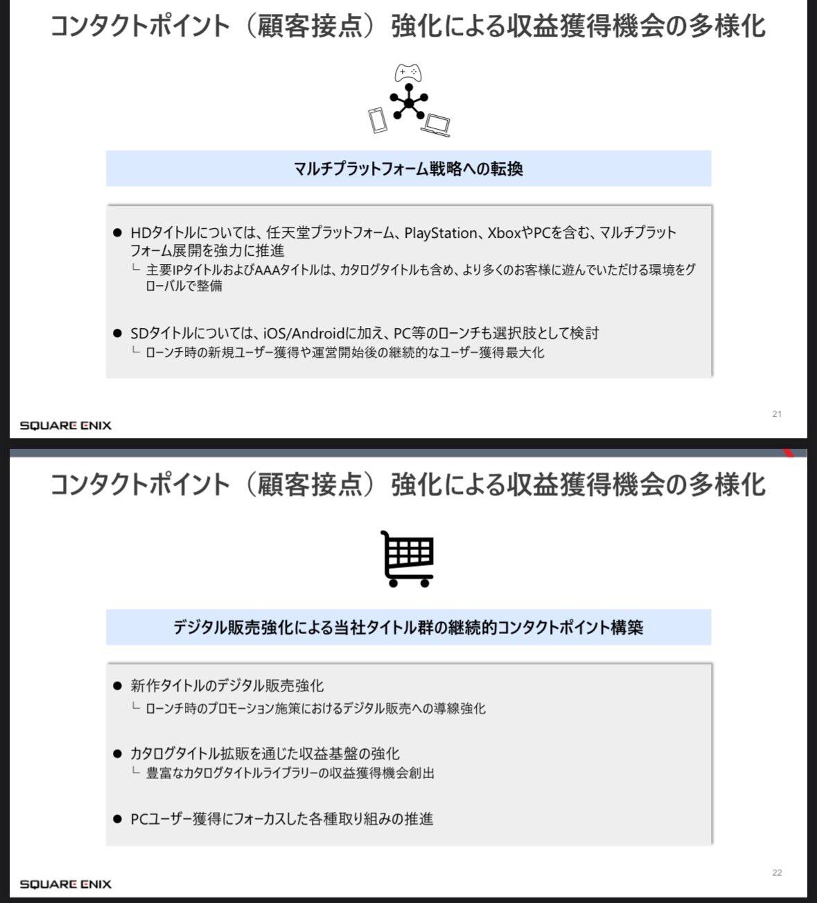 【ニュース】スクウェア・エニックス、新中期経営計画で「マルチプラットフォーム戦略」「量から質」への転換を掲げるhttps://t.co/u6NAMjxg9W pic.twitter.com/8XOv8Ia7uI