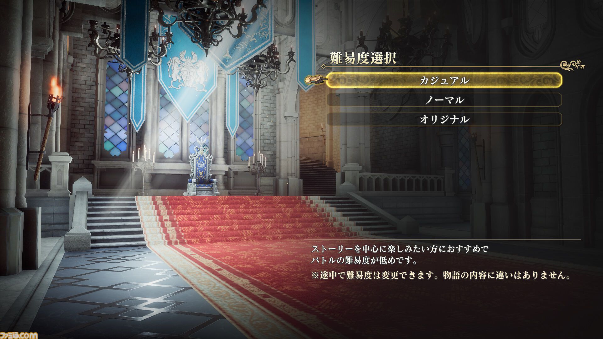 ゲームのバトル難易度はストーリーを中心に楽しみたい方向けに“カジュアル”、通常のRPGに慣れている方向けの“ノーマル”、