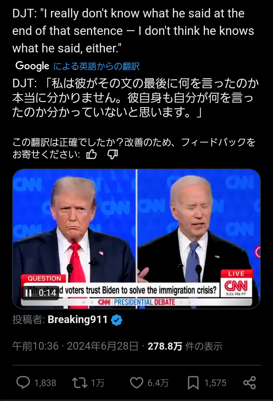 討論会後もまだバイデンを推してる支持者の反応はだいたいこんな感じやな