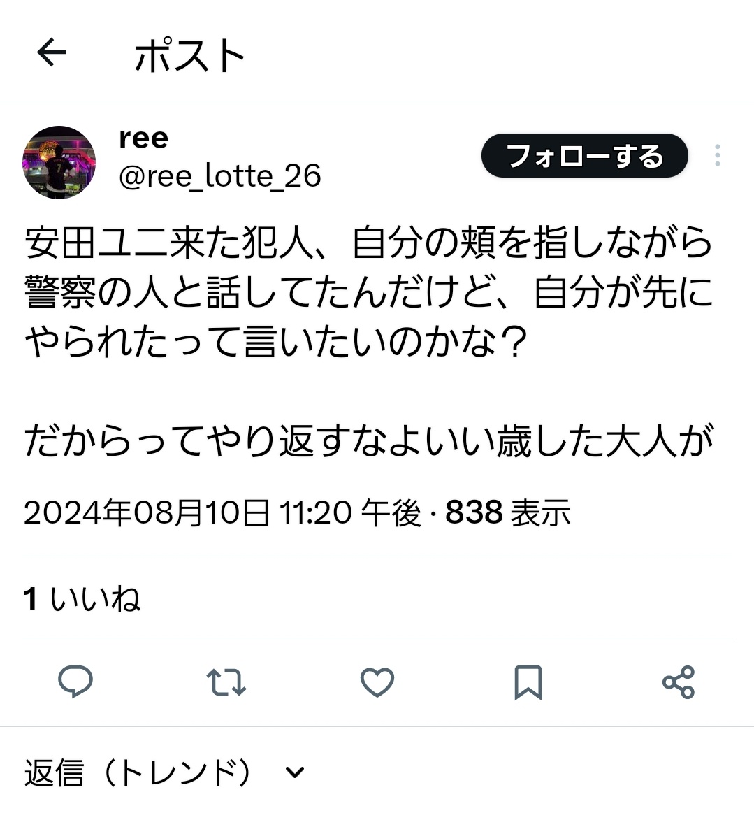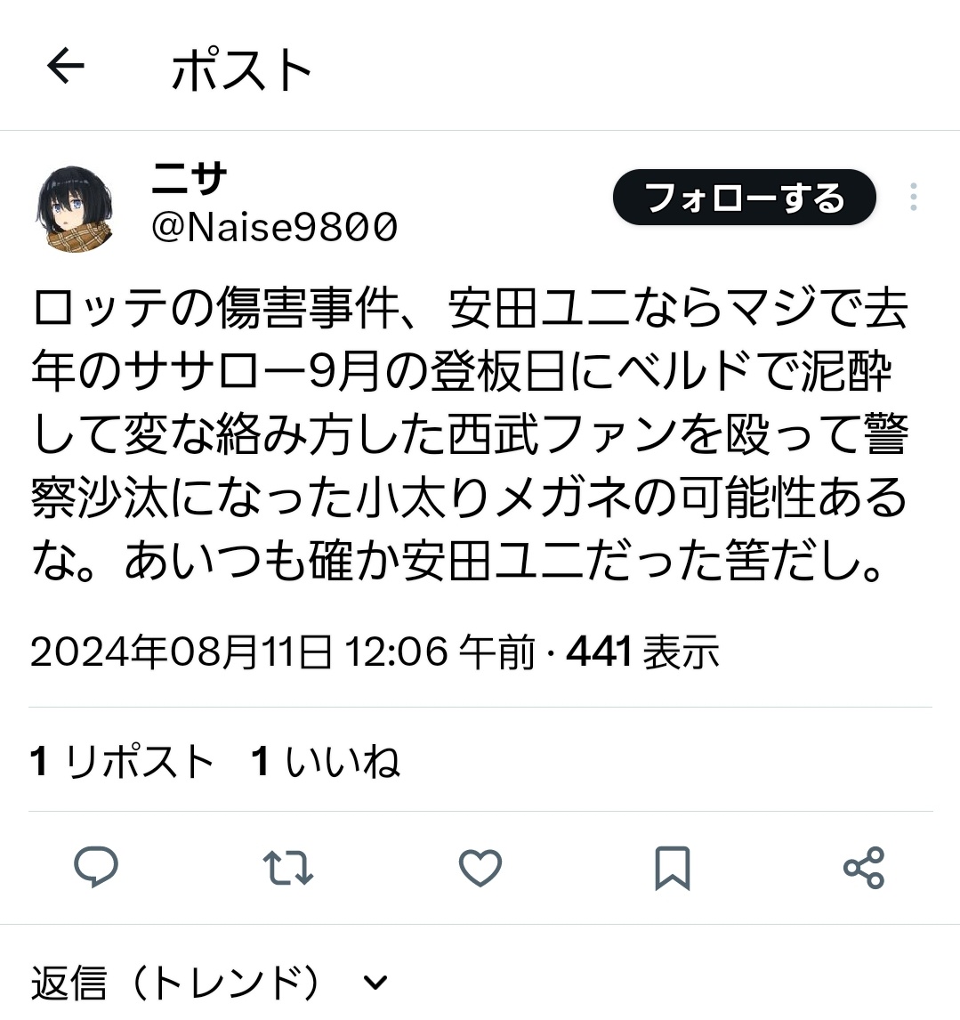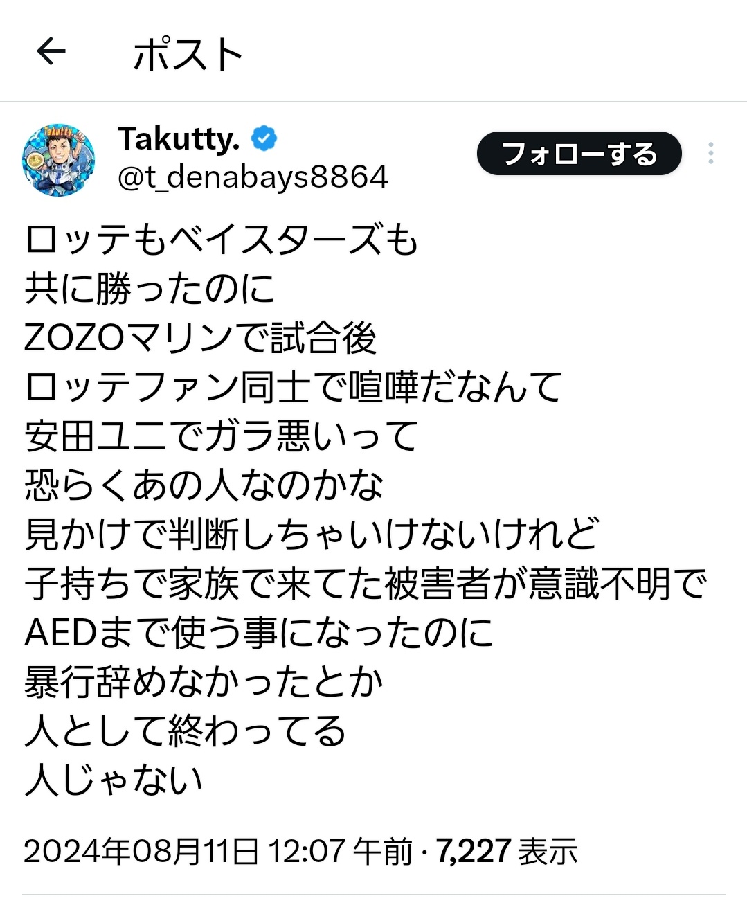 — とぅやん@鴎党 (@Touya_Lotte_26) August 10, 2024