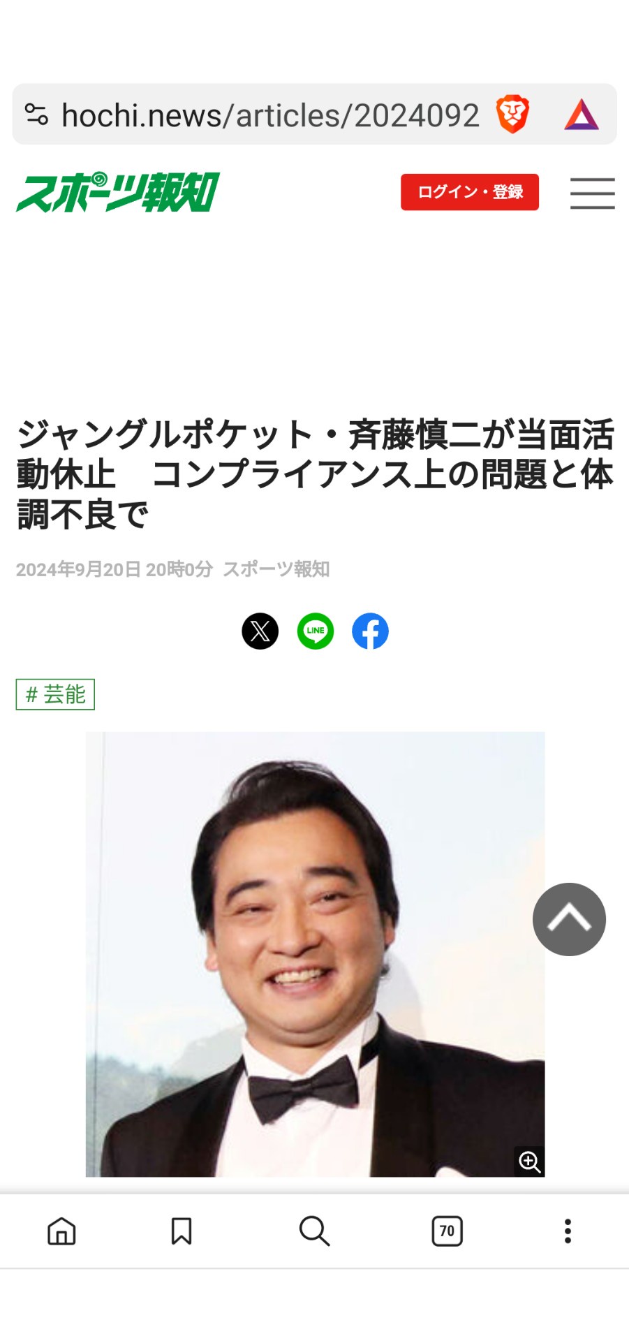 ジャンポケ・斉藤、活動休止を発表「先月来、入院するなど体調不良が続いておりましたが」【報告全文】