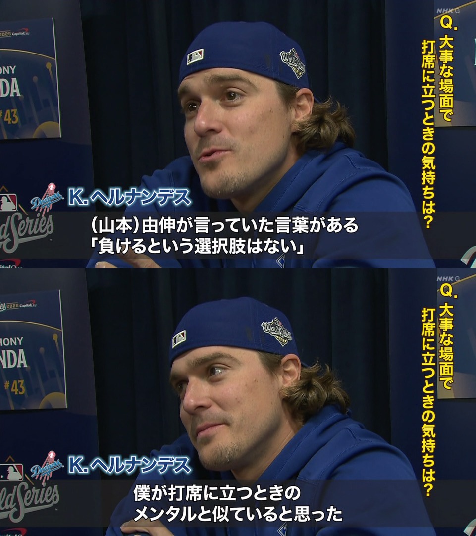 実際はオリックス時代にもよく言っていた「負けるわけにはいかないので」を通訳さんが意訳した結果、映画の主人公みたいなセリフに pic.twitter.com/uuoeGCPG1p