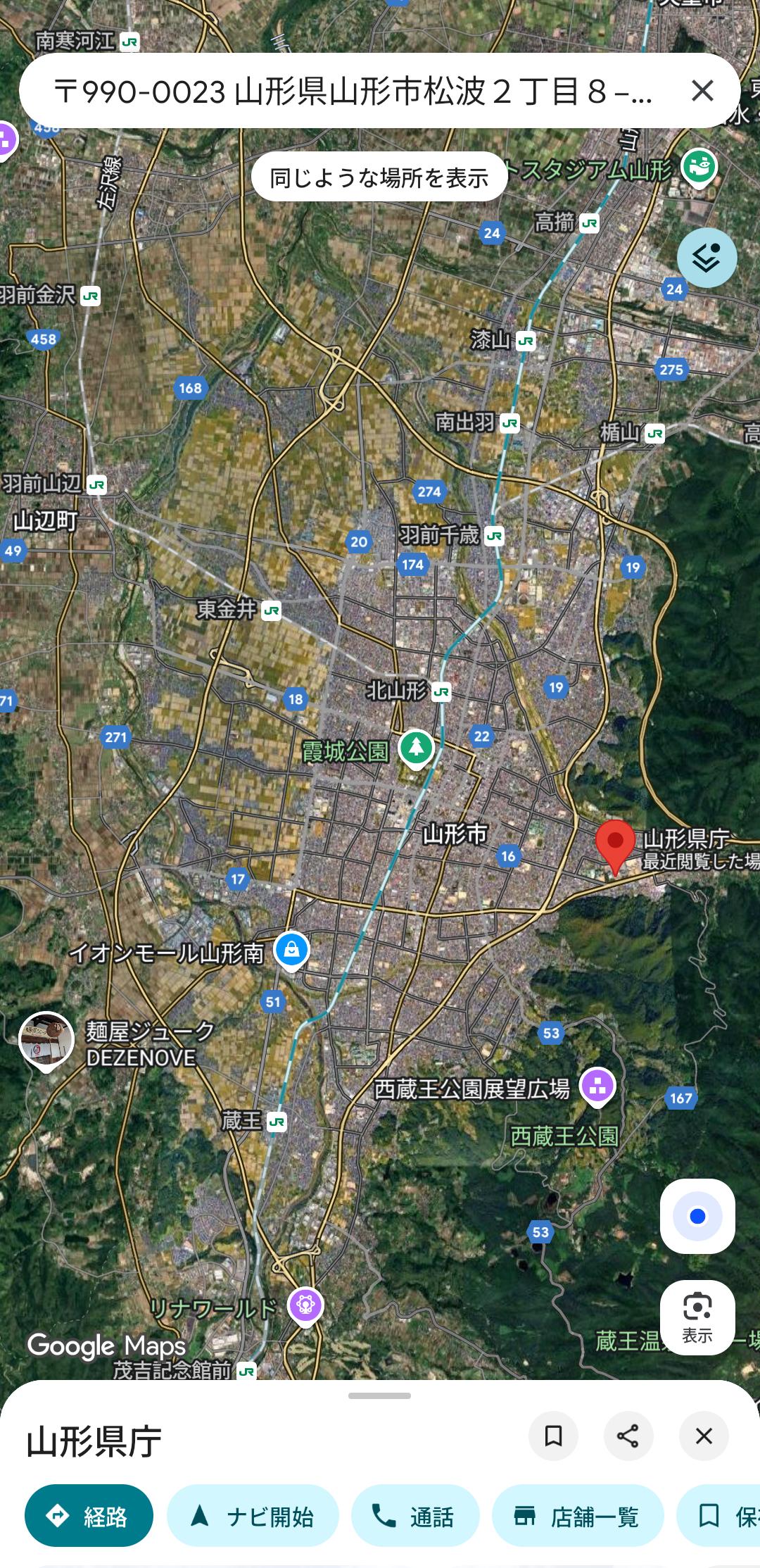 グーグルマップで見てきたが山形県庁の周辺めっちゃ山あって草生えた