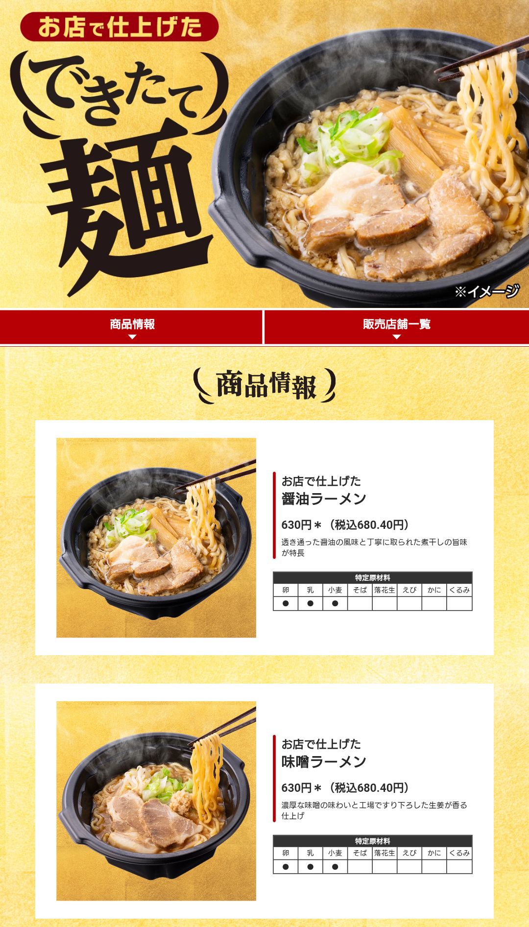 商品は、「お店で仕上げた醤油ラーメン(680.4円)」「お店で仕上げた味噌ラーメン(680.4円)」「お店で仕上げた豚骨醤油の家系ラーメン(680.4円)」