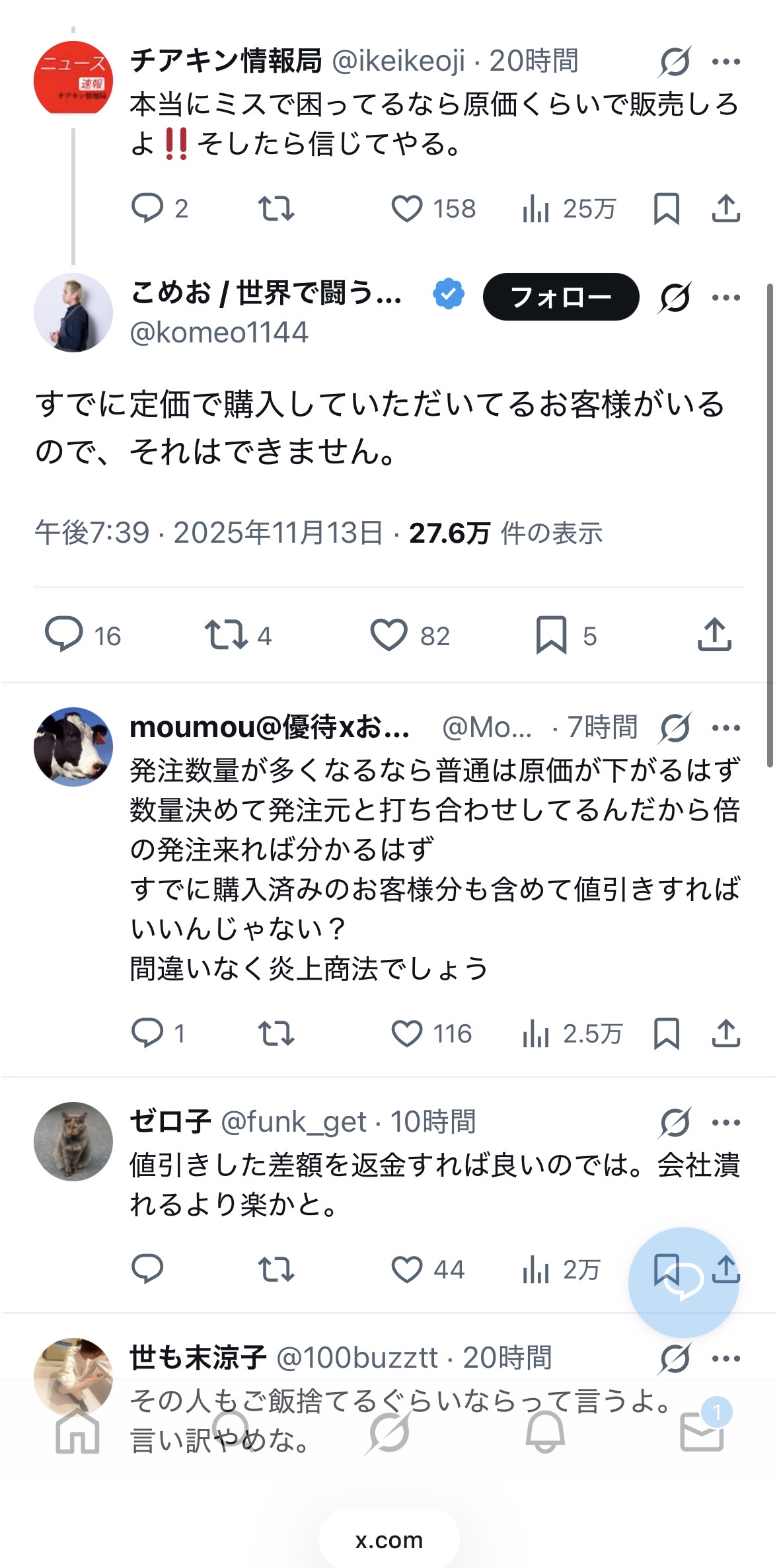 本当に誤発注だとしても安くしなきゃ意味ないやろ