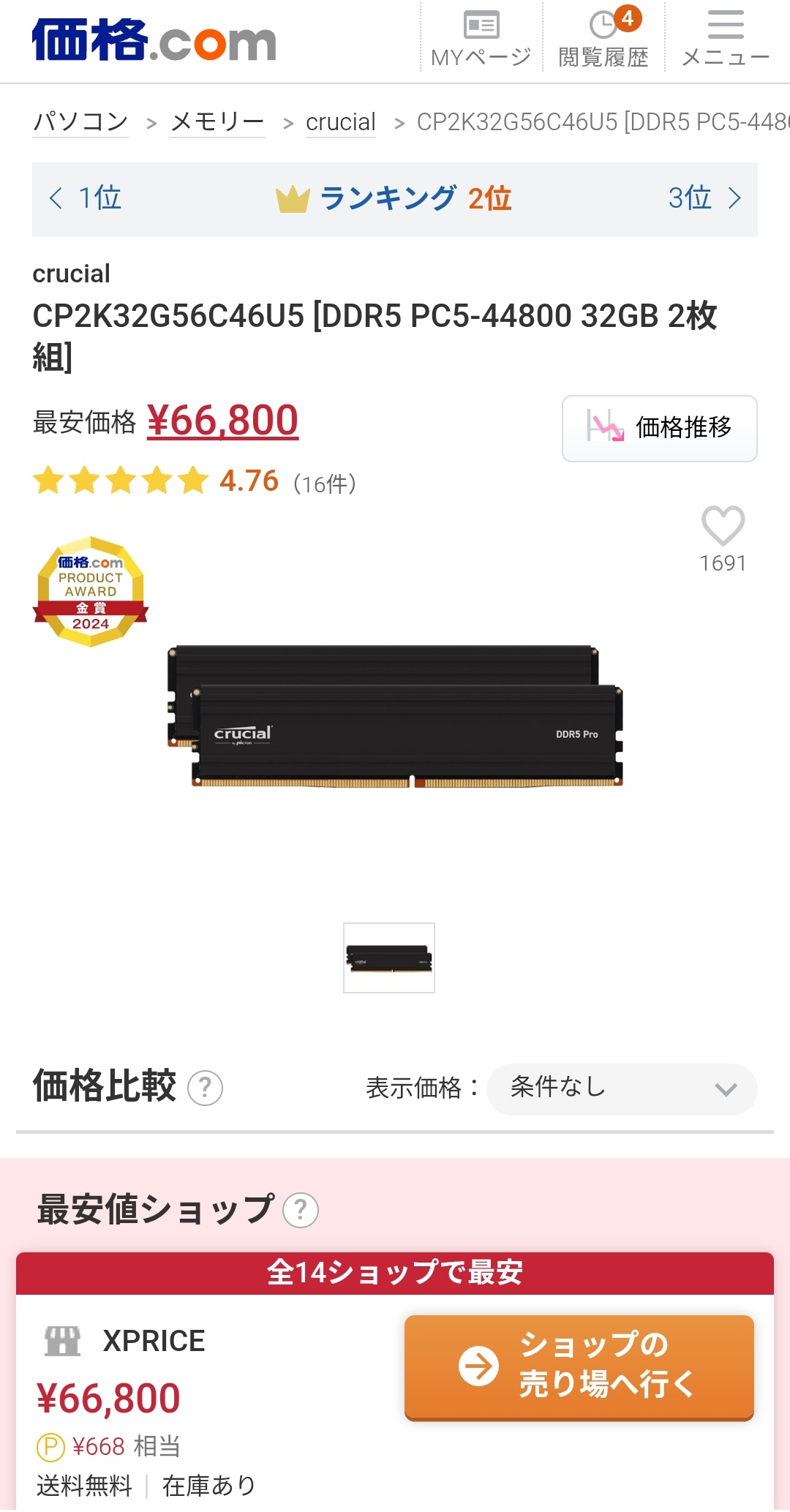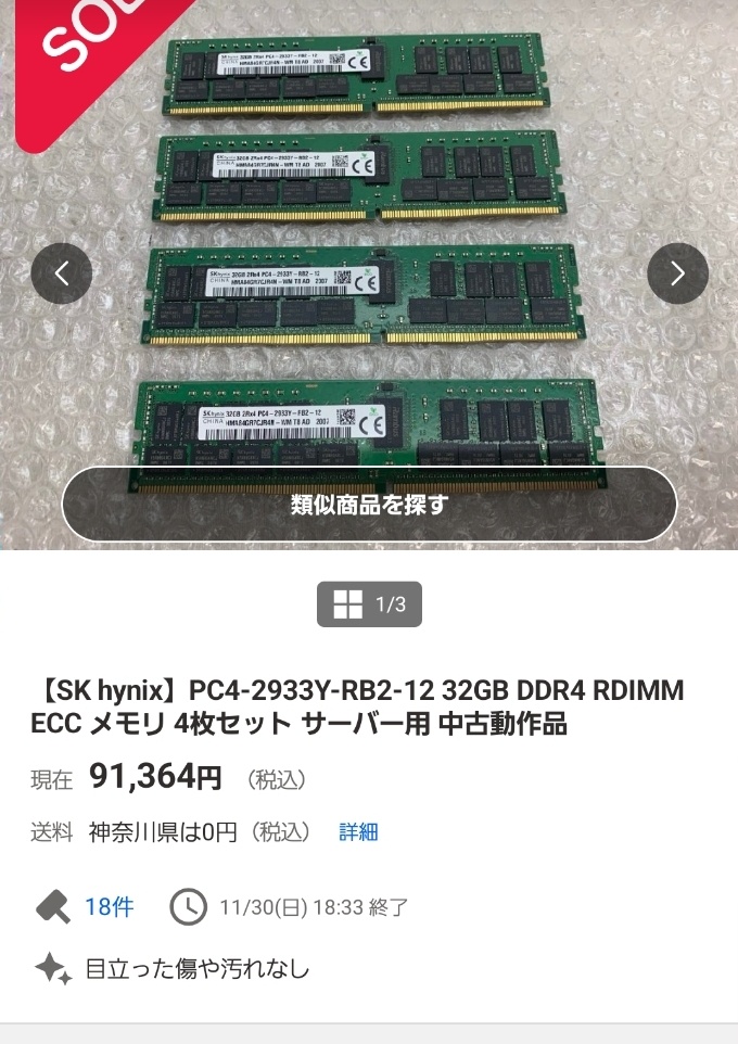 DDR4も9月10月頃と比べると2倍以上の値段になってんのな