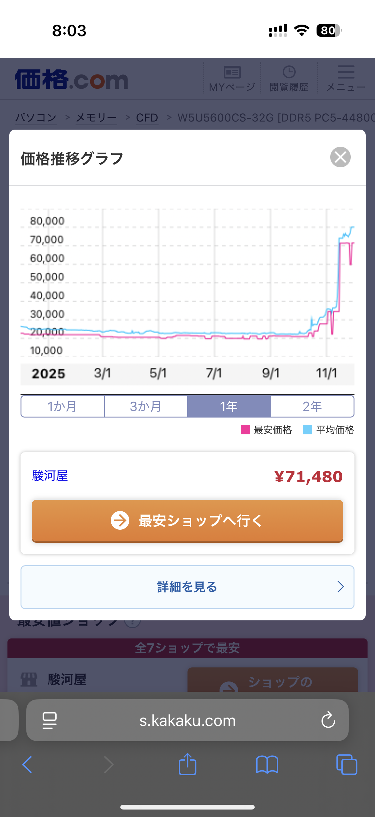 やや上がりはじめてるけどメモリのバカみたいな値段の上がり方よりはマシやな