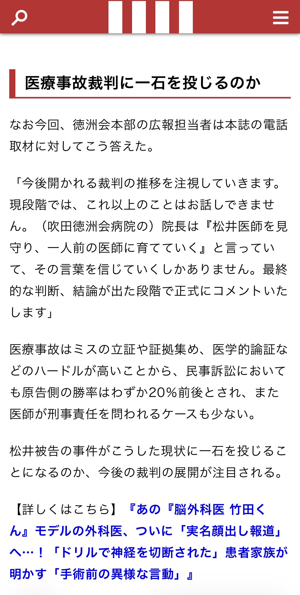 それでせっかく医誠会転生したのにそこもクビになって徳洲会転生したけど、そこでも色々やらかしてしまいには同僚から赤穂民報や週刊誌などに告発されとる。