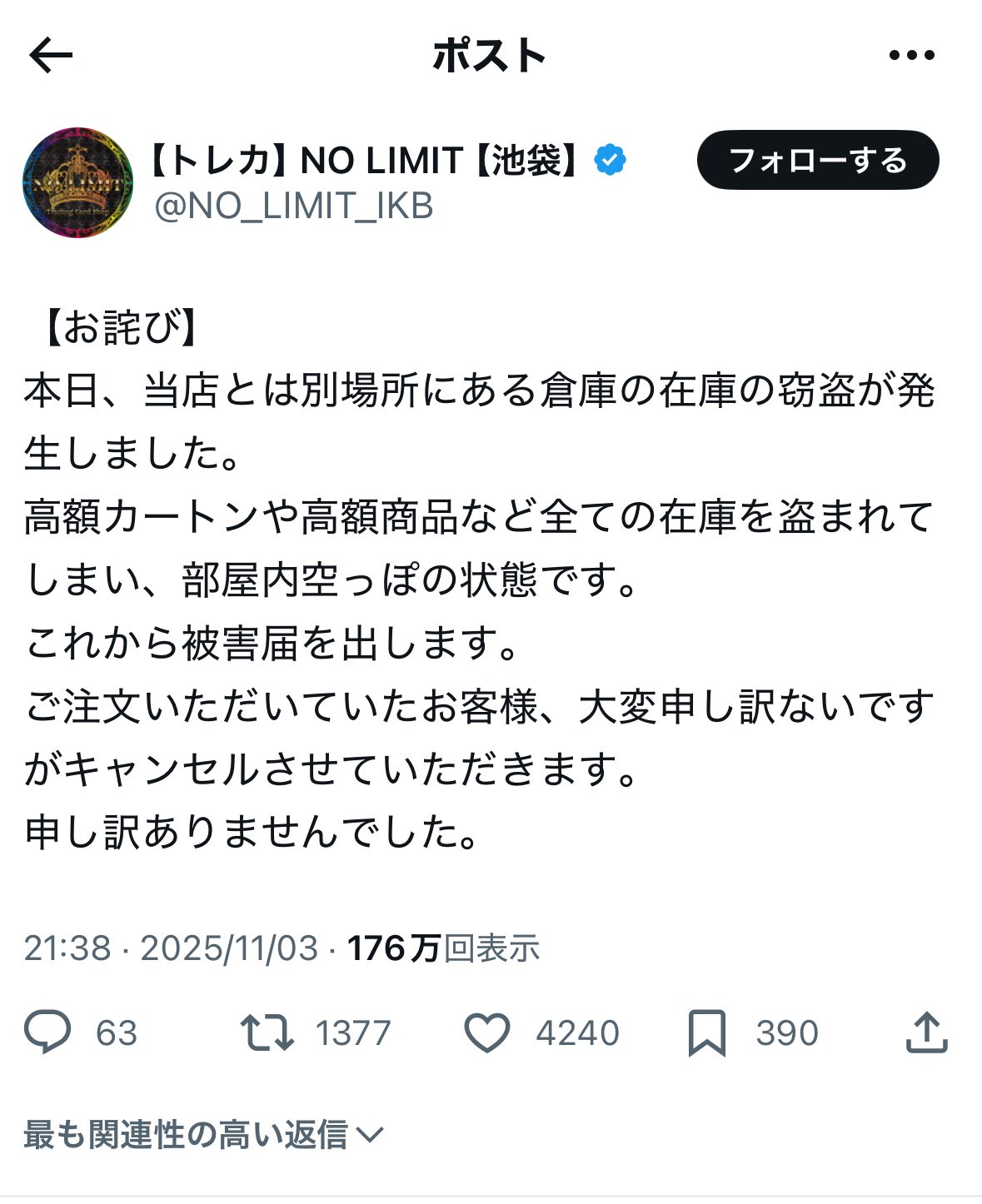 — 【トレカ】NO LIMIT【池袋】 (@NO_LIMIT_IKB) December 31, 2025