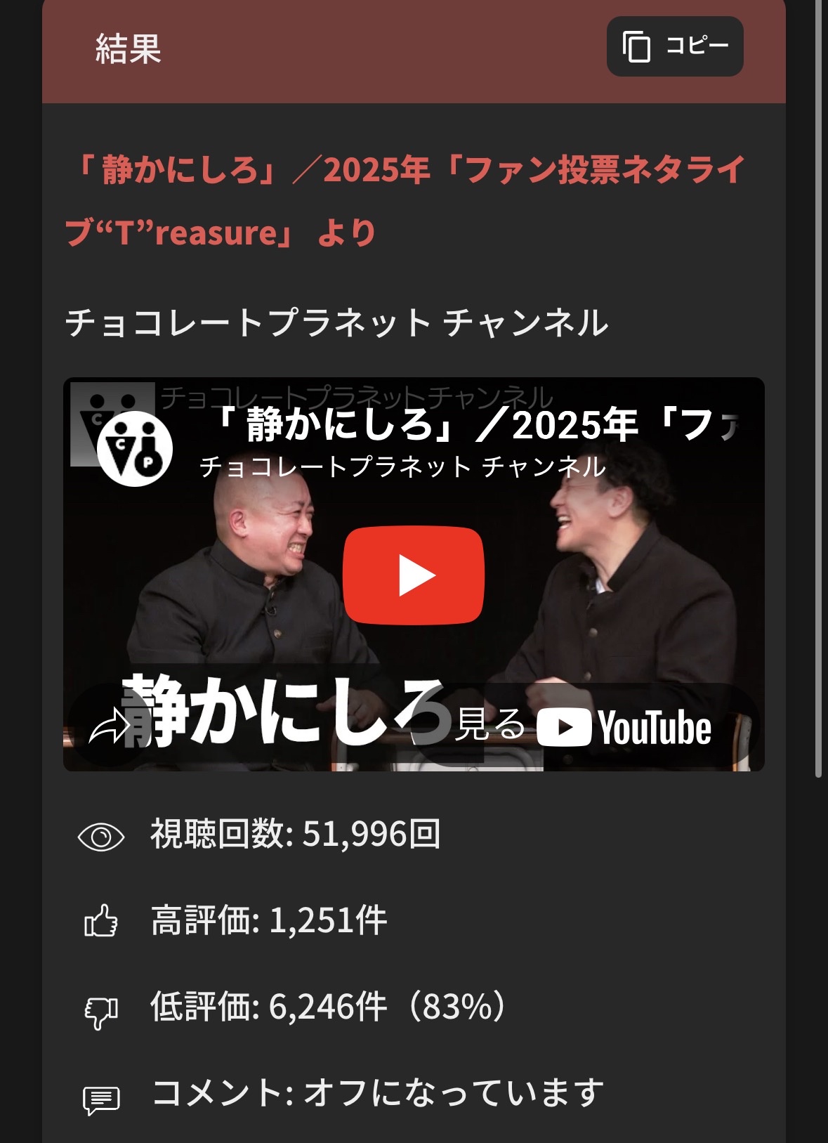 コメント書けない事が周知されたら再生数半分ぐらいになりそう